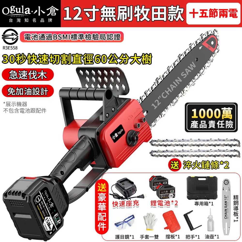 Ogula 小倉【Ogula小倉】電鏈鋸 鏈鋸機 12吋無刷電鏈鋸 鋰電鋸子 電動鋸子 電動單手鋸 園林修枝伐木【品牌保固】