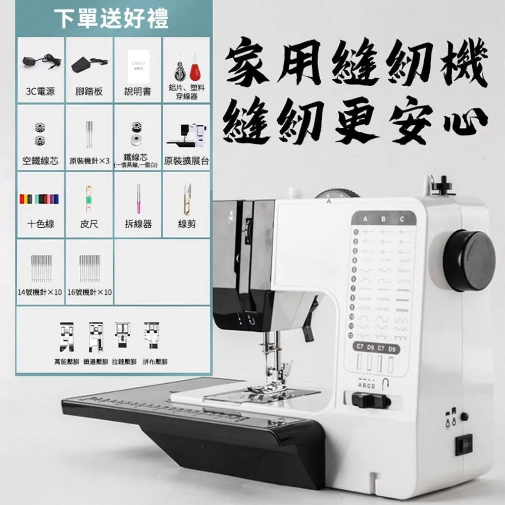 沃爾VOLER縫紉機 38線型縫紉機 家用帶鎖邊縫衣機(台式快慢可調 腳踏多功能裁縫機 擴展台/底座一體機)
