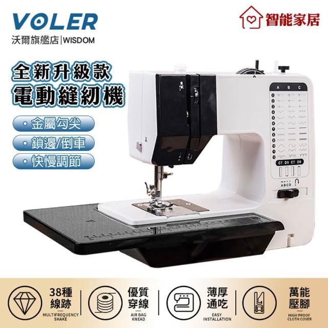 沃爾VOLER縫紉機 38線型縫紉機 家用帶鎖邊縫衣機(台式快慢可調 腳踏多功能裁縫機 擴展台/底座一體機)