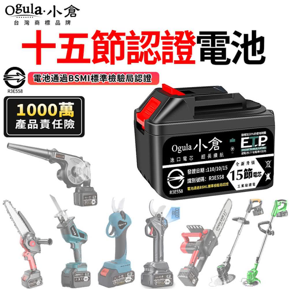 Ogula 小倉鋰電池 BSMI:R3E558認證電池 十五節電芯(1000萬產品責任險)