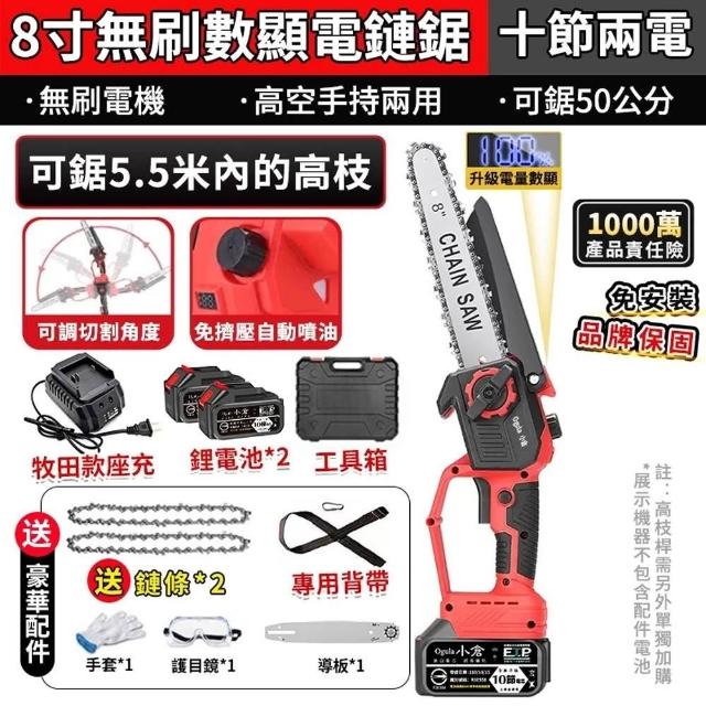 Ogula 小倉電鏈鋸 高枝鋸 8寸無刷電鏈鋸(附帶高枝桿)(電動高空鋸/2980W大功率帶電量顯示)
