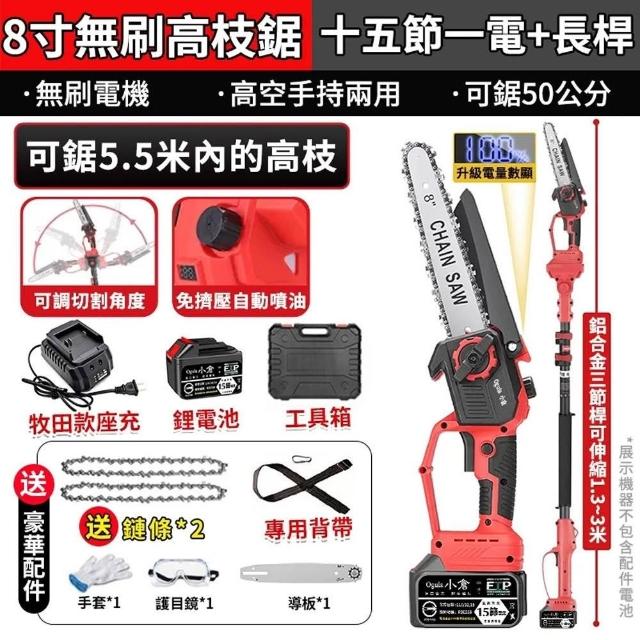 Ogula 小倉電鏈鋸 高枝鋸 8寸無刷電鏈鋸(附帶高枝桿)(電動高空鋸/2980W大功率帶電量顯示)