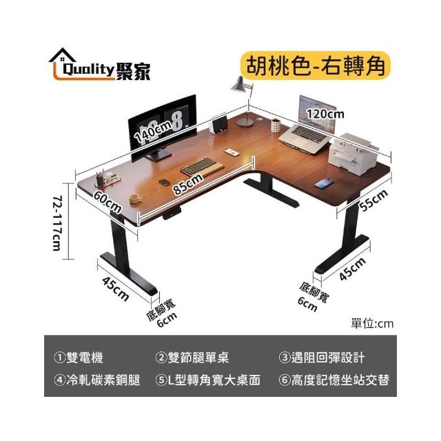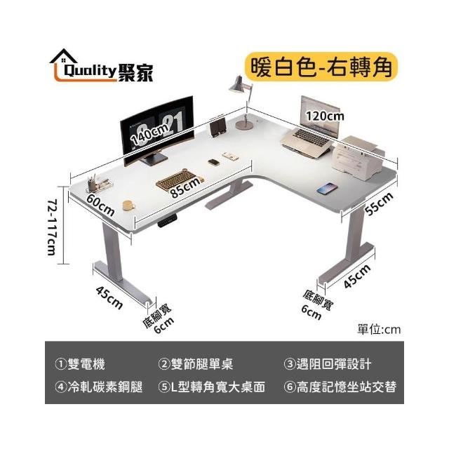Quality 聚家 140×120公分L型升降桌轉角款 三色可選(電動升降桌/轉角桌/轉角電腦桌/L型桌/辦公桌)