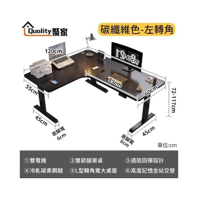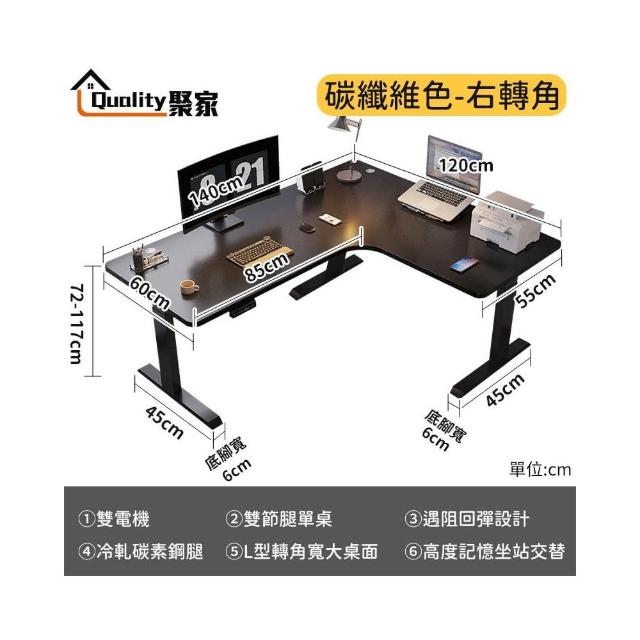 Quality 聚家 140×120公分L型升降桌轉角款 三色可選(電動升降桌/轉角桌/轉角電腦桌/L型桌/辦公桌)