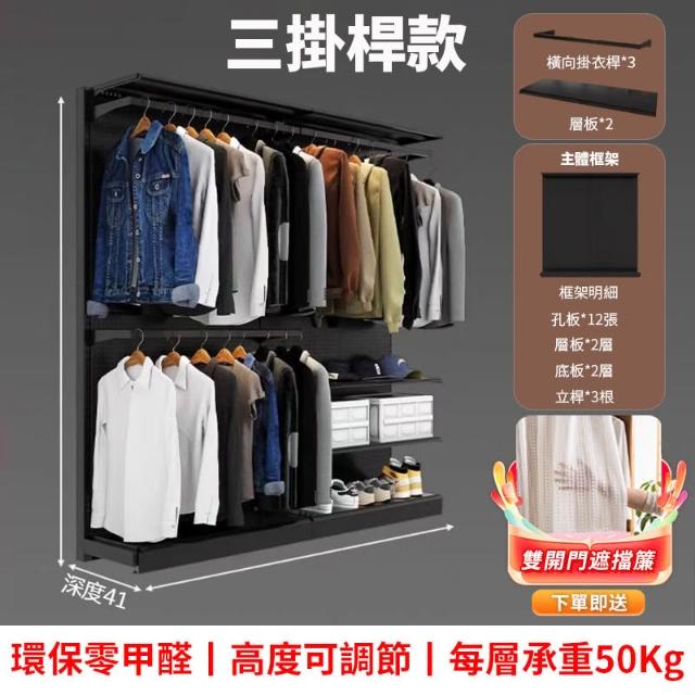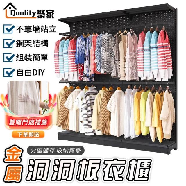 Quality 聚家 洞洞板衣櫃 掛衣架 落地衣櫃 置物架 儲物架 開放式衣櫃 DIY衣櫃 衣帽間 送雙開門遮擋簾