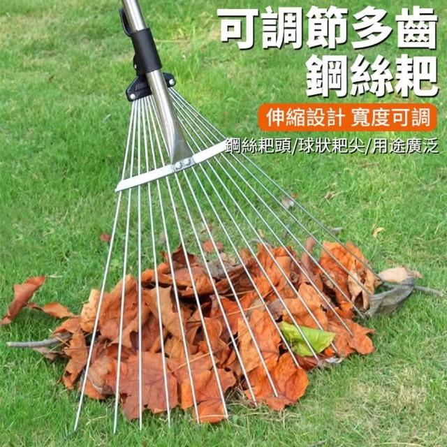 小達草耙 不鏽鋼伸縮耙子 園藝工具 草坪鐵爪子 農具耙尺 摟草耙 鋼絲耙扒草耙子 草坪耙 落葉釘耙