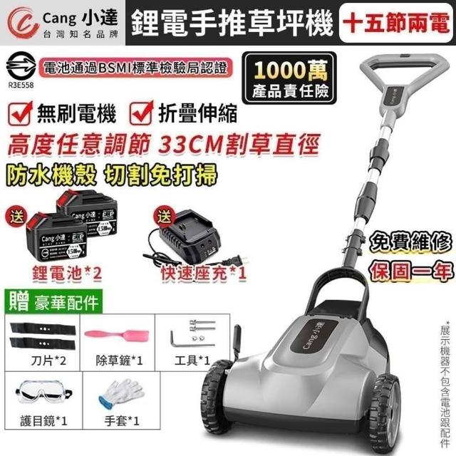 小達割草機 除草機 手推式電動草坪機(三檔高度調節/切割免打掃)防水充電式打草機 認證BSMI:R3E558