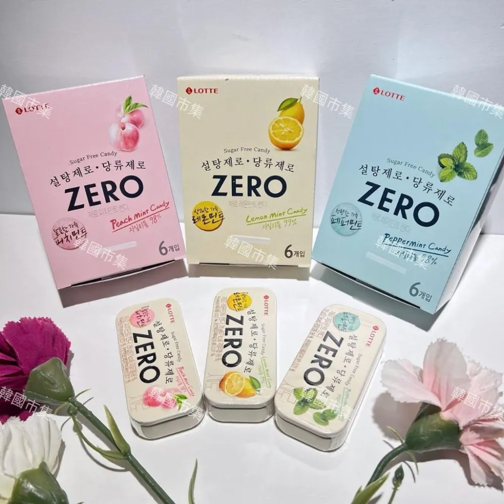 "韓國市集"LOTTE樂天ZERO 無糖薄荷糖28g(檸檬/薄荷/水蜜桃)