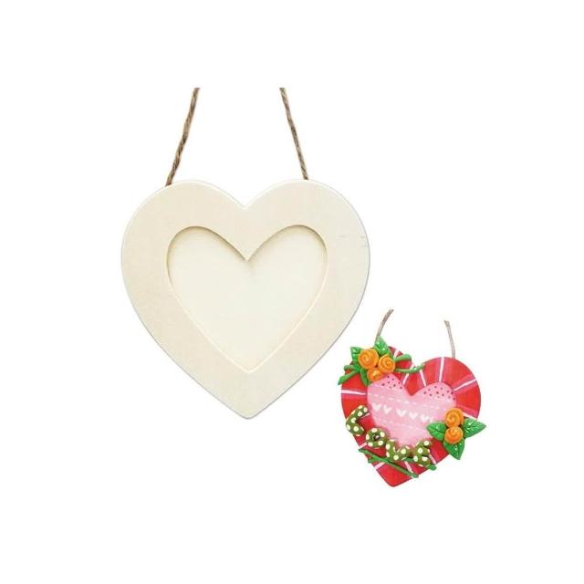 台灣現貨 DIY木器 吊繩愛心相框 木器 黏土彩繪勞作美勞 相框 愛心 小公園手作