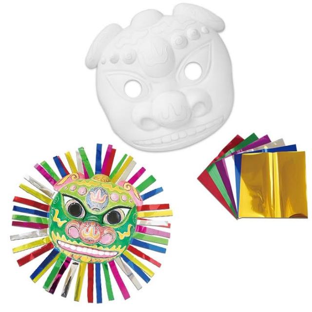 台灣現貨 DIY材料包 新年舞獅面具 面具彩繪 新年美勞 舞龍舞獅 過年主題 露營 親子 幼稚園 小公園手作
