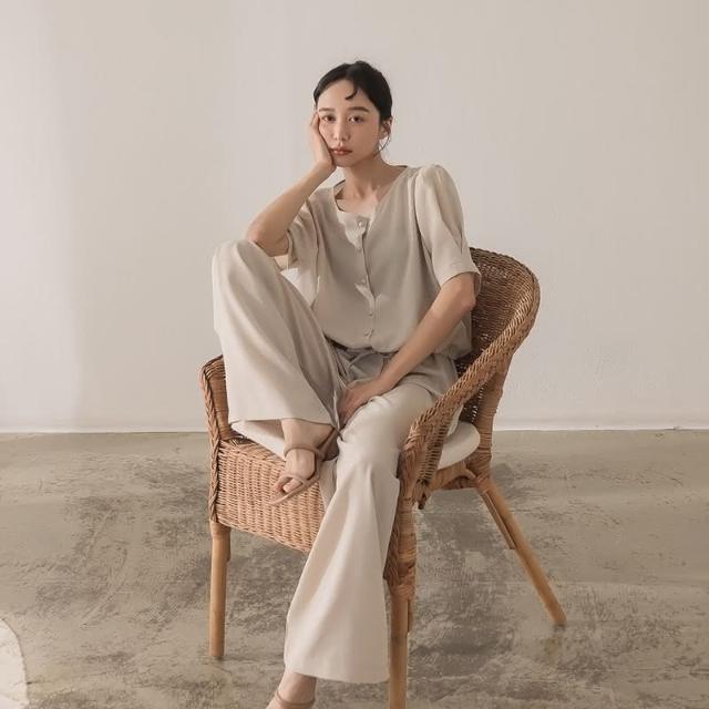 ISUKI韓國空運 褲裝 長褲 套裝 兩件式 俐落褲裝 杏色清新款 正韓女裝 質感穿搭 精緻女孩|ISUKI SHOP