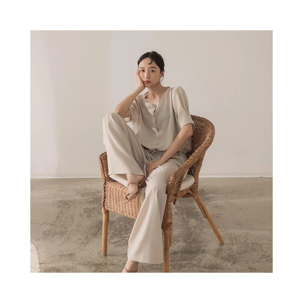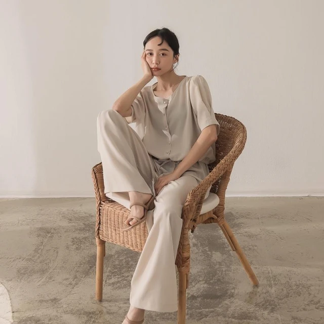 韓國空運 褲裝 長褲 套裝 兩件式 俐落褲裝 杏色清新款 正韓女裝 質感穿搭 精緻女孩|ISUKI SHOP