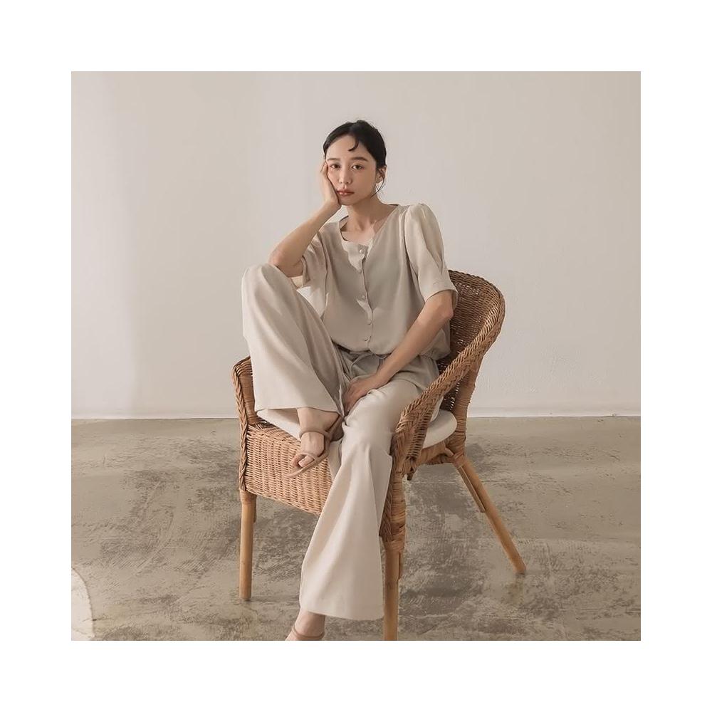 ISUKI韓國空運 褲裝 長褲 套裝 兩件式 俐落褲裝 杏色清新款 正韓女裝 質感穿搭 精緻女孩|ISUKI SHOP
