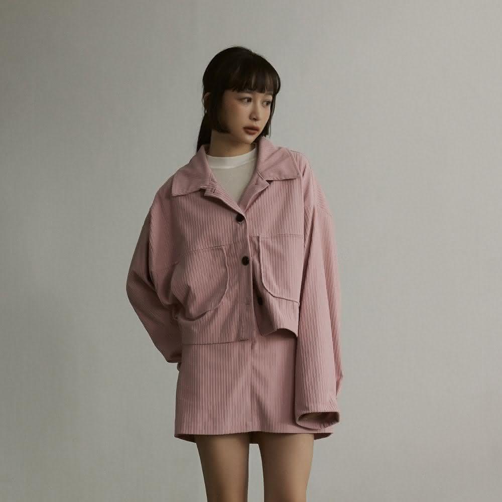 ISUKI韓國空運 洋裝 短裙 外套 兩件式 燈芯絨 霧面粉 正韓女裝 質感穿搭 精緻女孩|ISUKI SHOP