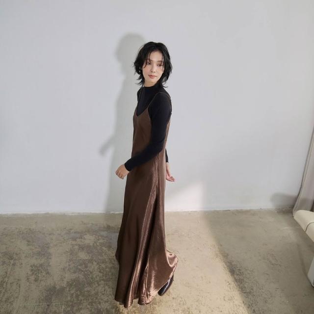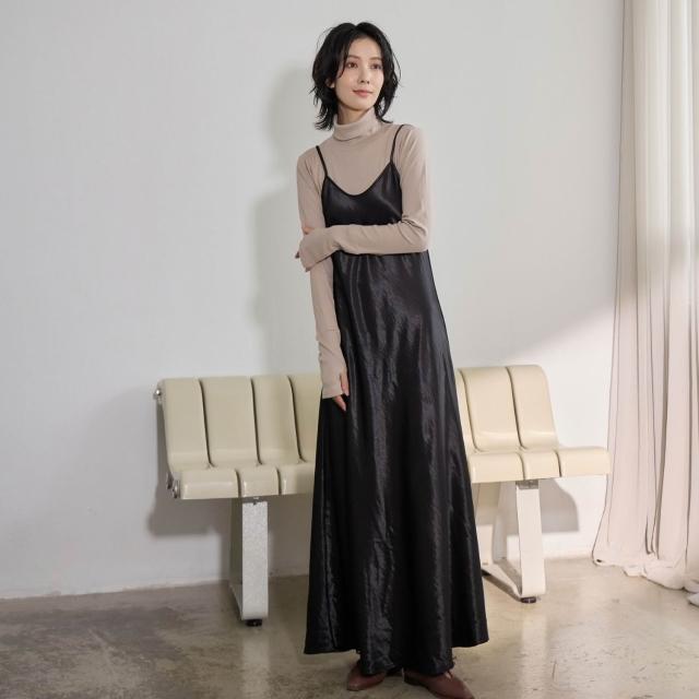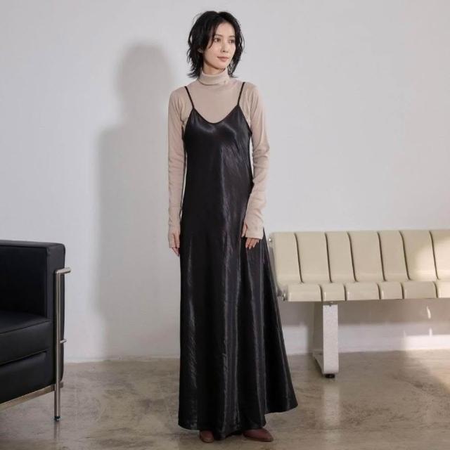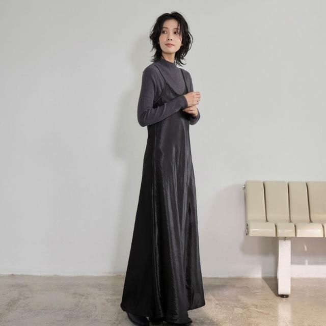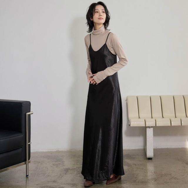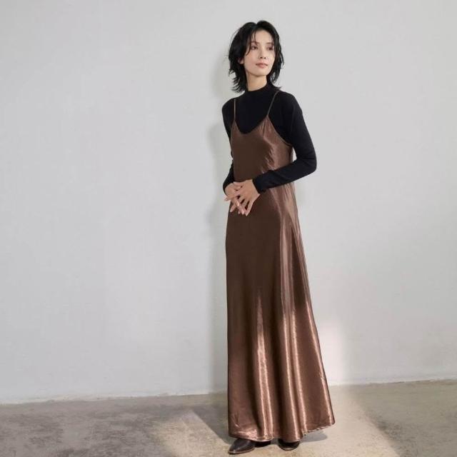 ISUKI日本空運✨背心洋裝 日系洋裝 光澤感洋裝 長洋裝 連身裙 冬天洋裝 A字洋裝 氣質洋裝 咖啡 黑|ISUKI SHOP