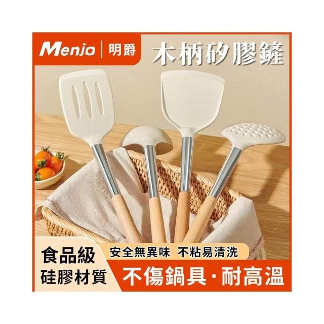 拉拉貝兒Menjo 廚具組 升級款矽膠鏟 不粘鍋矽膠勺 矽膠鍋鏟 不沾鍋耐高溫 抗菌矽膠廚具 矽膠勺煎鏟 漏勺 湯勺