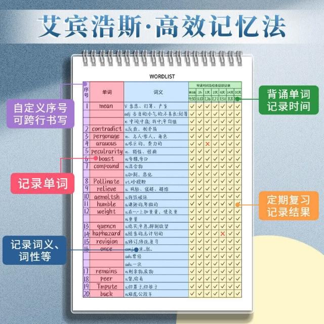 拉拉貝兒單詞本 艾賓浩斯記憶曲線單詞本 英語單詞本 學生加厚英語本 考研記背生詞本子 線圈默寫本 透明磨砂封面單字