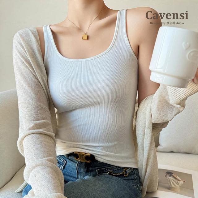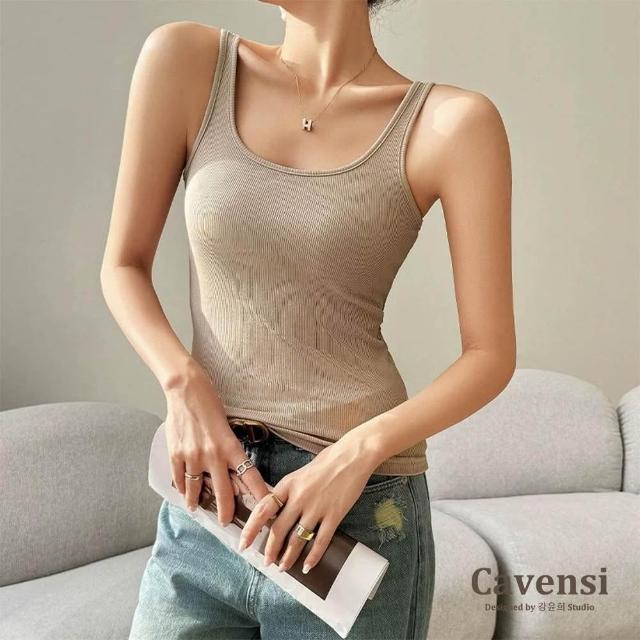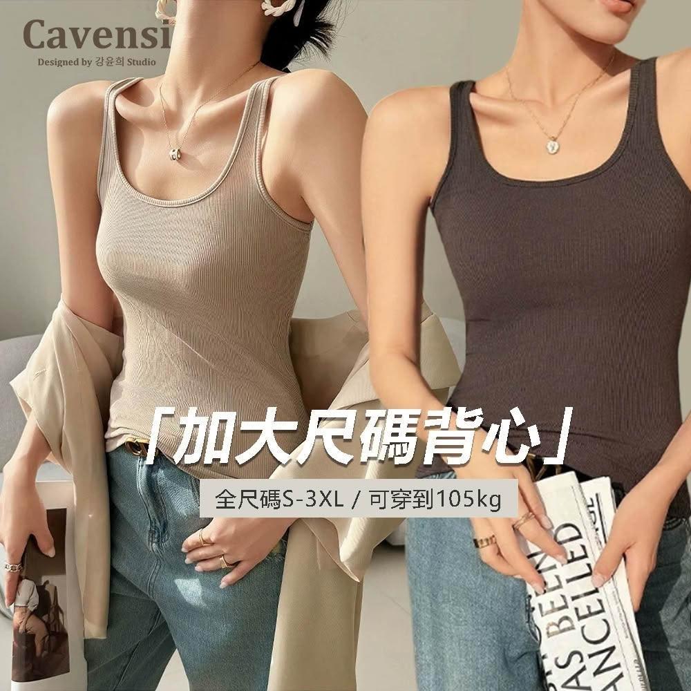 CavensiCavensi_100kg可穿/台灣出貨 大碼背心 小可愛 U領純棉螺紋 大尺碼內搭背心 外穿 針織無袖打底衫 A83