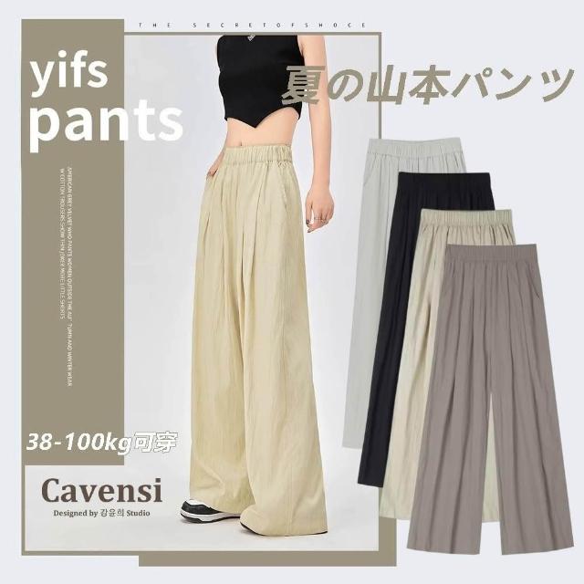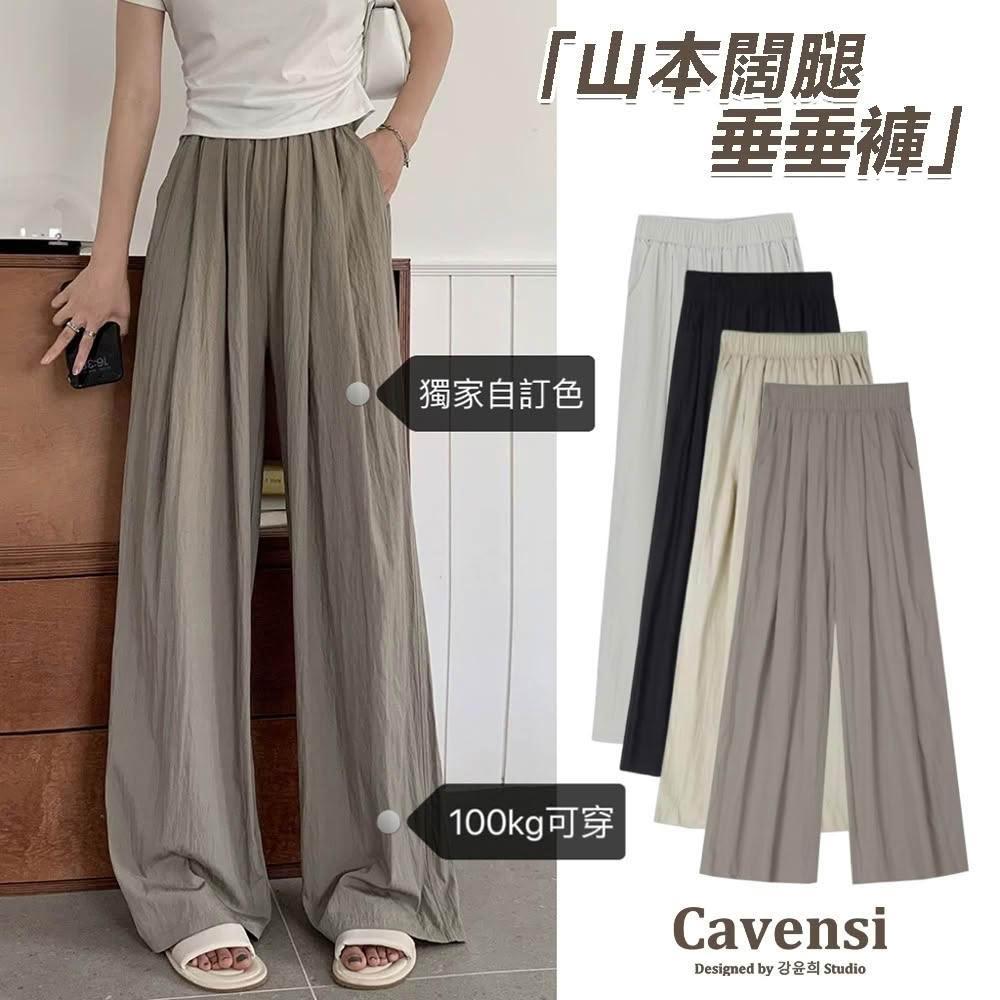 CavensiCavensi_自製款 升級100kg可穿 秋裝上新!日系山本褲 涼感大碼褲女 顯瘦闊腿寬褲 寬褲大尺碼 A129