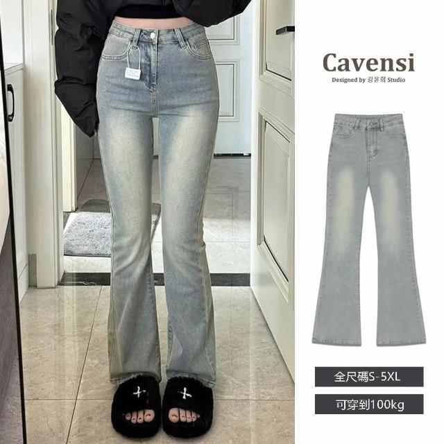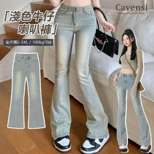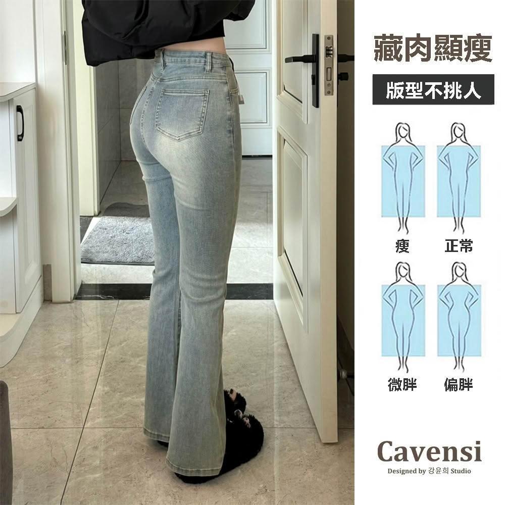 CavensiCavensi_ 顯屁屁 100kg可穿/台灣出貨 顯腿長 牛仔褲 大尺碼褲 梨形身材 喇叭褲 高腰牛仔褲 A94