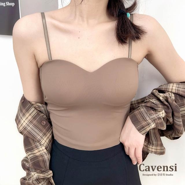 CavensiCavensi_加大到4XL 獨家自訂實拍4色 帶胸墊可調細肩帶 小可愛 固定杯胸墊 大尺碼 背心 內搭 冰絲 A43
