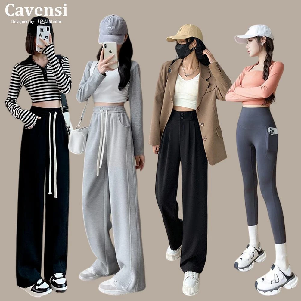 CavensiCavensi_100kg可穿 春秋季長褲女 重磅有厚度 大尺碼寬褲 闊腿褲大尺碼 卡其色褲 直筒褲 鬆緊腰褲 A9