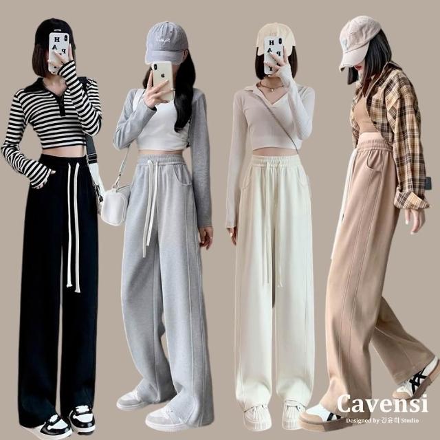 CavensiCavensi_100kg可穿 春秋季長褲女 重磅有厚度 大尺碼寬褲 闊腿褲大尺碼 卡其色褲 直筒褲 鬆緊腰褲 A9