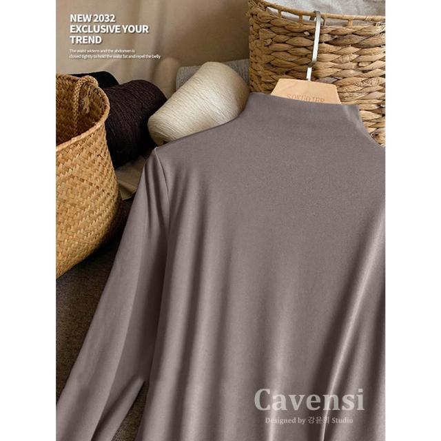 CavensiCavensi_24H出貨 素色長袖 超柔軟面料 打底衣 打底衫 素色保暖衣 大尺碼打底衣 大碼 半高領 內搭長袖A2