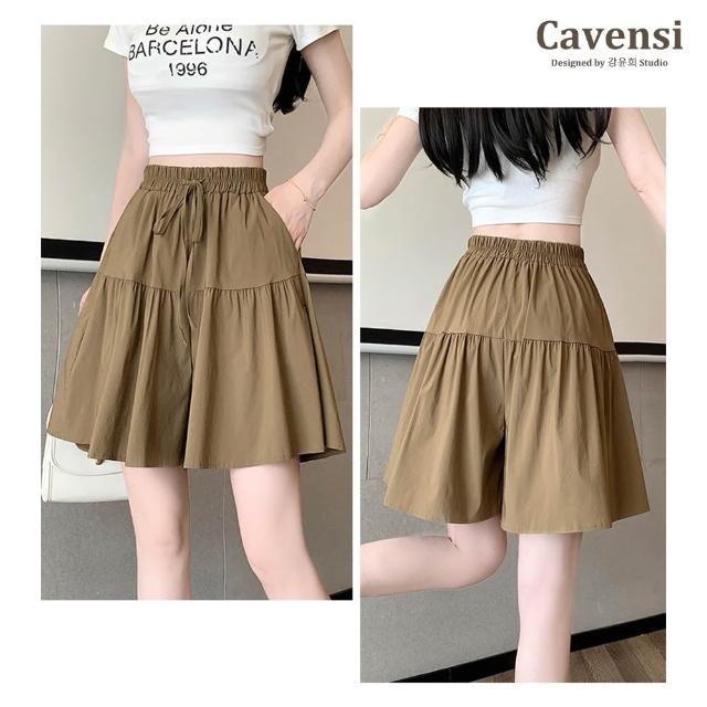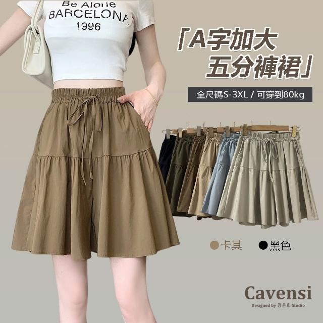 CavensiCavensi_80kg可穿 大尺碼褲裙 鬆緊腰 抽繩 五分褲女 加大碼短褲 A字裙 褲裙 短褲 短裙 夏天 A228