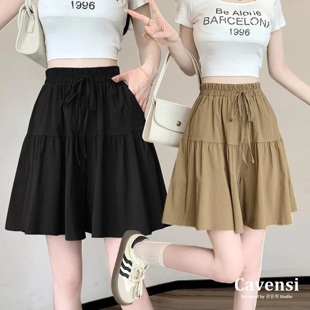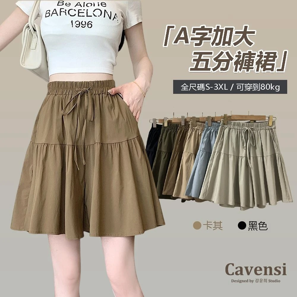 CavensiCavensi_80kg可穿 大尺碼褲裙 鬆緊腰 抽繩 五分褲女 加大碼短褲 A字裙 褲裙 短褲 短裙 夏天 A228