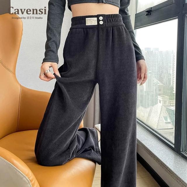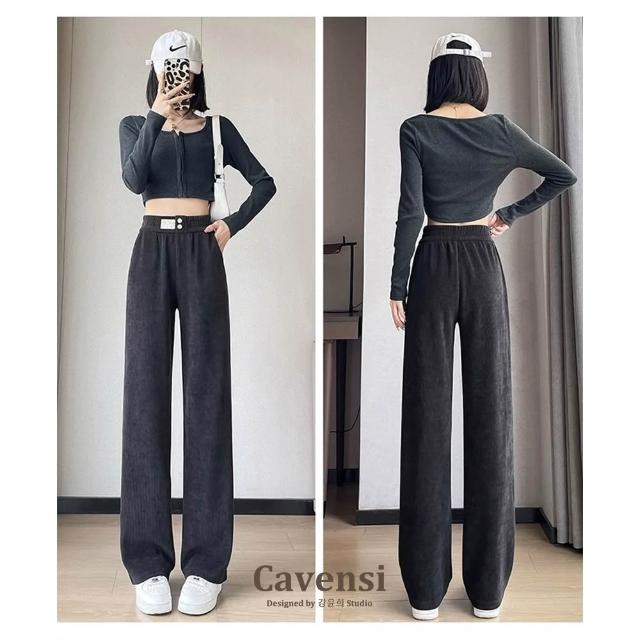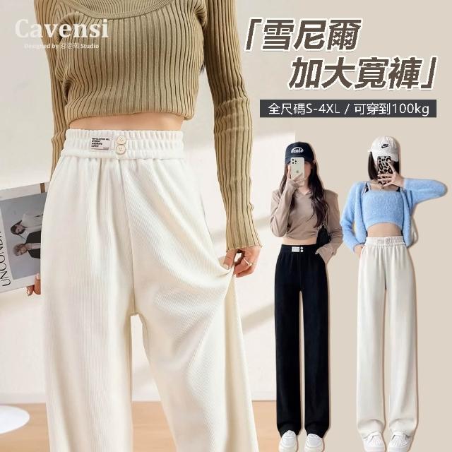 CavensiCavensi_S-4XL 加厚冬天長褲女 闊腿褲 雪尼爾長褲 拖地褲 大碼寬褲 鬆緊腰抽繩寬褲 秋冬褲子 A141