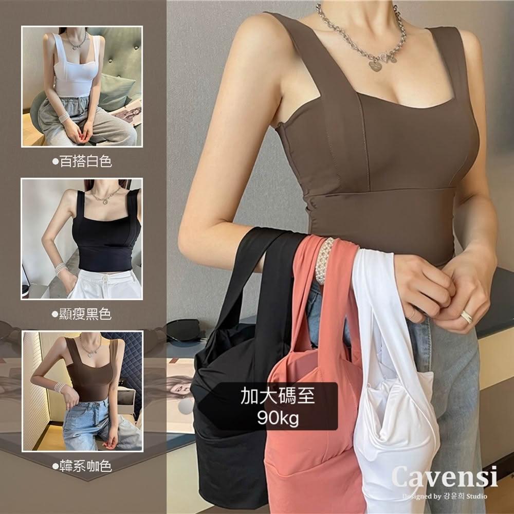 CavensiCavensi_台灣出貨 Bra top 小可愛帶胸墊 90公斤可穿 超舒適冰絲 大尺碼小可愛 免穿內衣背心 A63