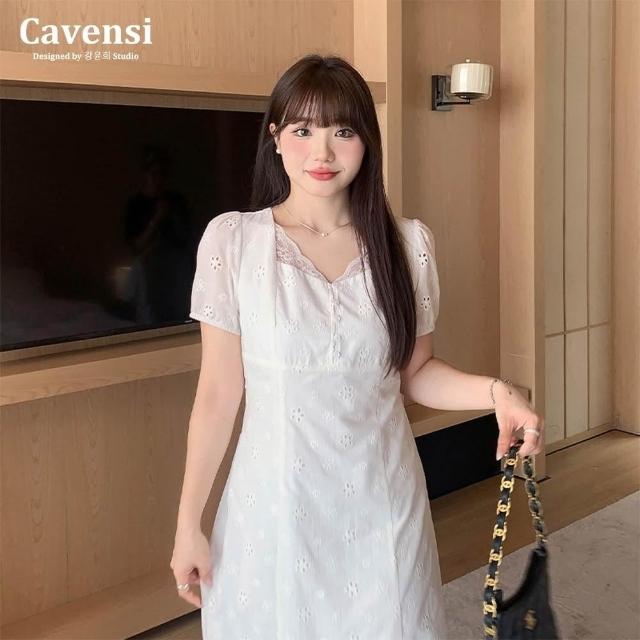 Cavensi【Cavensi清貨款】非質量問題No退換 M-5XL 白色蕾絲連身裙 短袖洋裝 雪紡連衣裙 大尺碼洋裝 白色洋裝S22