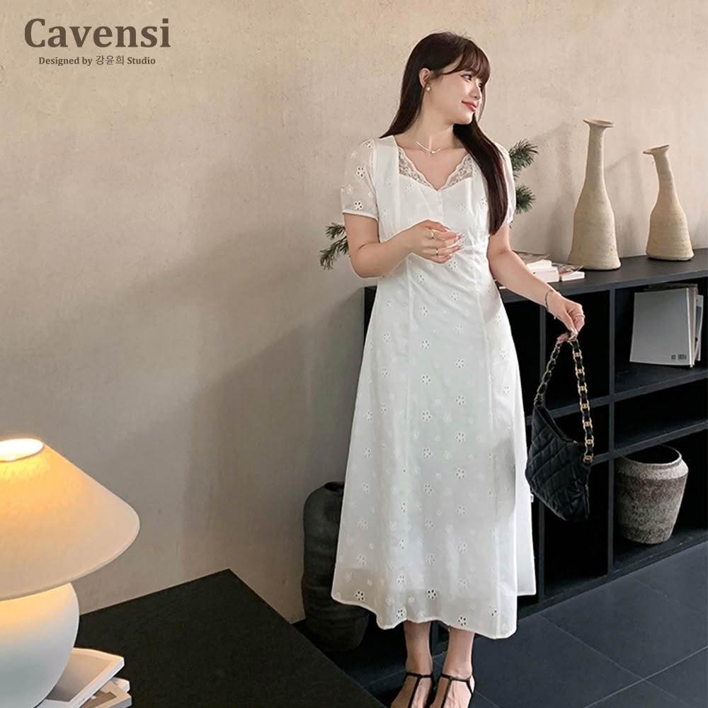 Cavensi【Cavensi清貨款】非質量問題No退換 M-5XL 白色蕾絲連身裙 短袖洋裝 雪紡連衣裙 大尺碼洋裝 白色洋裝S22