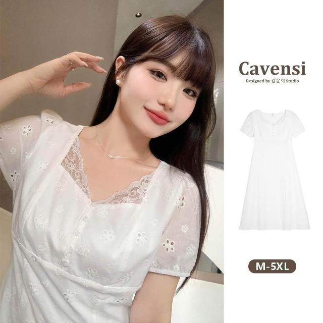 Cavensi【Cavensi清貨款】非質量問題No退換 M-5XL 白色蕾絲連身裙 短袖洋裝 雪紡連衣裙 大尺碼洋裝 白色洋裝S22