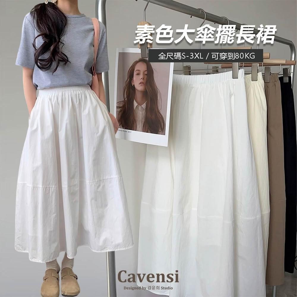 CavensiCavensi S-3XL 夏天大傘擺蛋糕長裙 白色傘裙 鬆緊腰大裙擺 A字裙 半身裙 長裙 裙子 韓系穿搭 A260