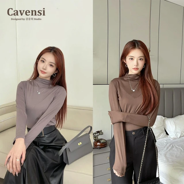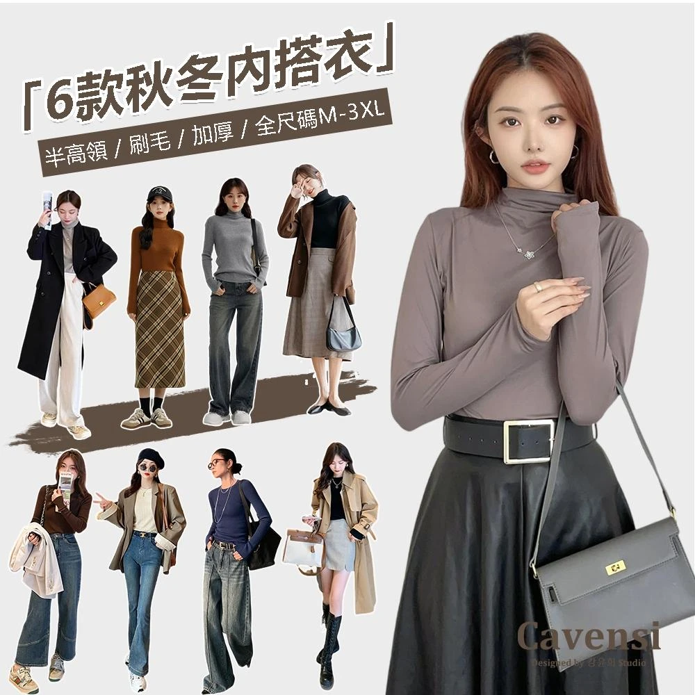 CavensiM-3XL 中大尺碼 半高領上衣 長袖上衣女 內搭長袖 內搭上衣 秋冬 刷毛內搭 A2 A6