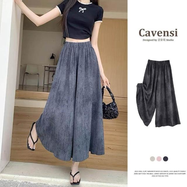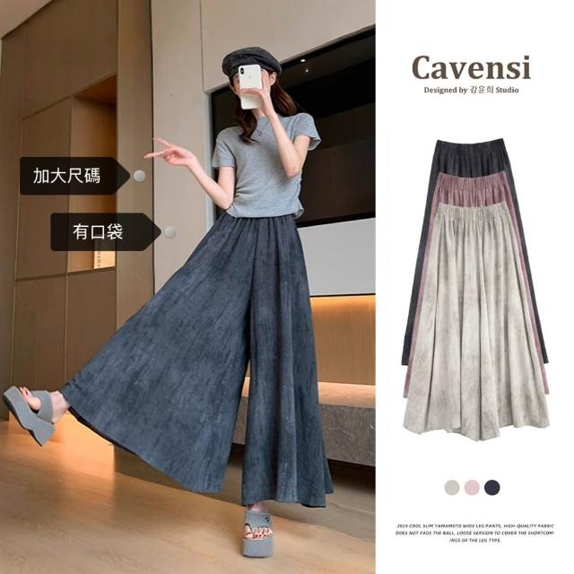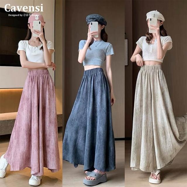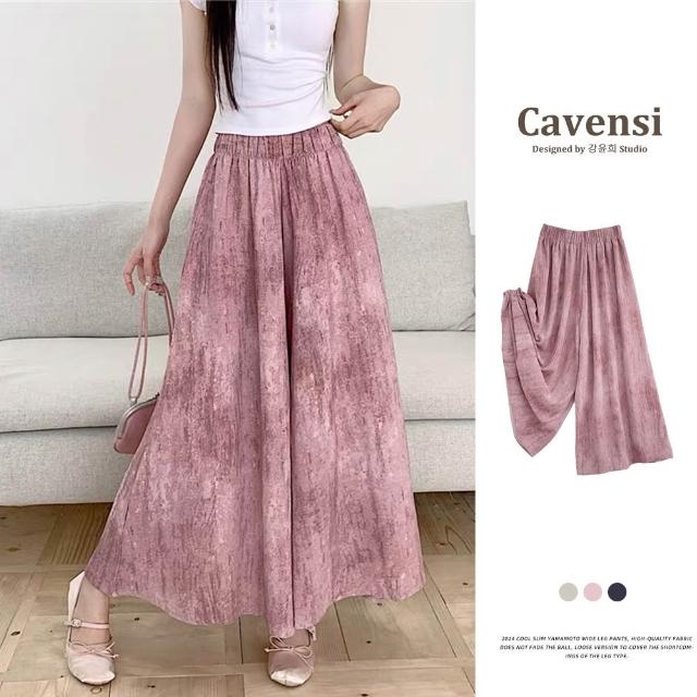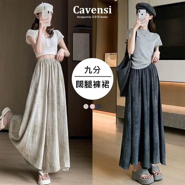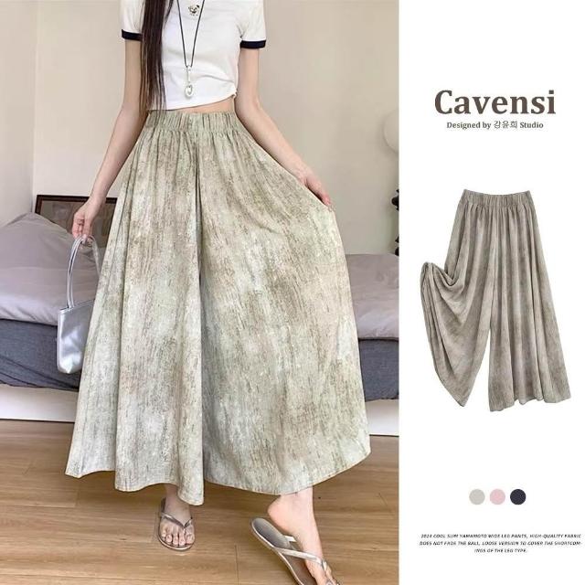 Cavensi加大至85KG 紥染休閑褲女 大尺碼褲裙 九分褲裙 夏季高腰垂感髒髒裙褲 防曬涼涼裙褲 A290