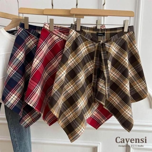 Cavensi韓國JENNIE同款疊穿🖤格子屁簾女 假兩件 一片式繫帶 襯衫 屁裙 格紋襯衫 綁腰 屁簾女 A291