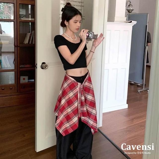 Cavensi韓國JENNIE同款疊穿🖤格子屁簾女 假兩件 一片式繫帶 襯衫 屁裙 格紋襯衫 綁腰 屁簾女 A291