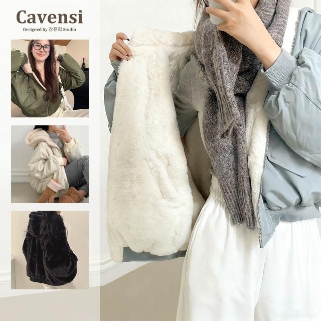 Cavensi100kg可穿 北極絨毛雙面穿 防風保暖連帽外套 加絨大尺碼外套 羽絨服 兩面穿 羊羔毛大衣 A171