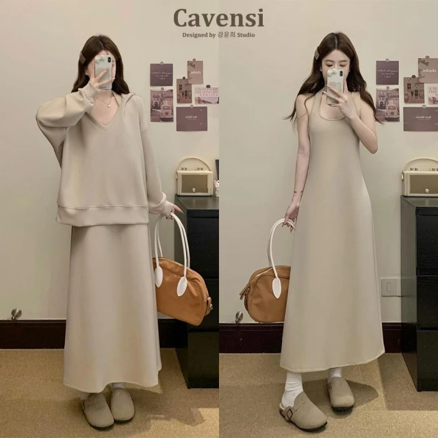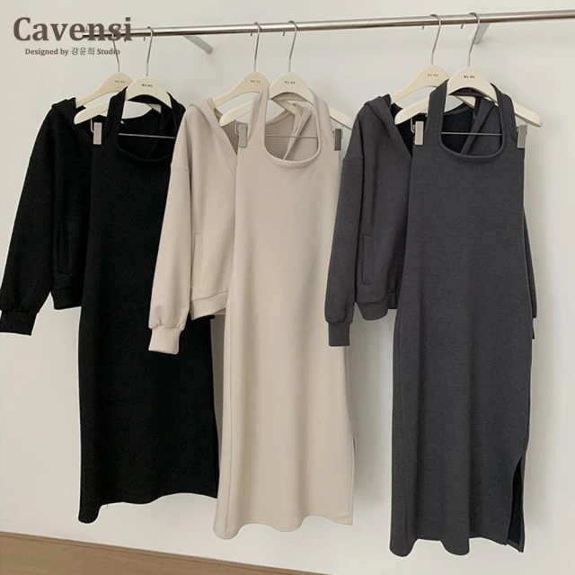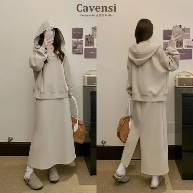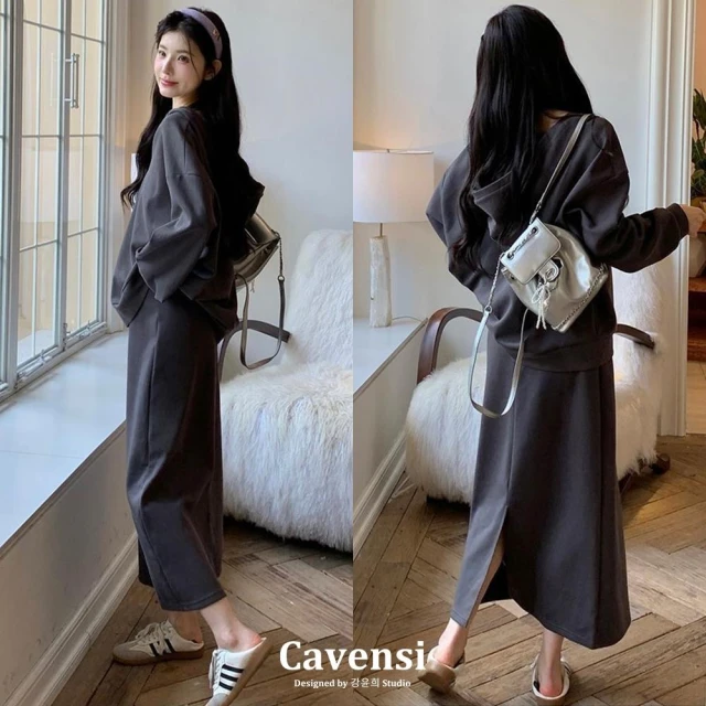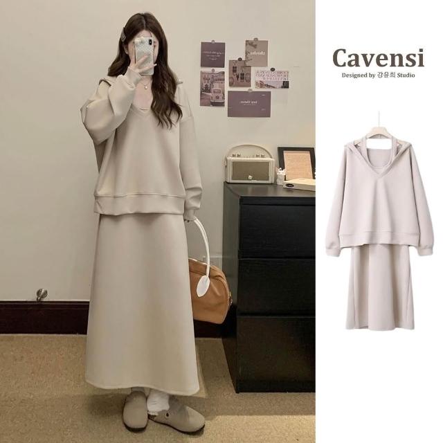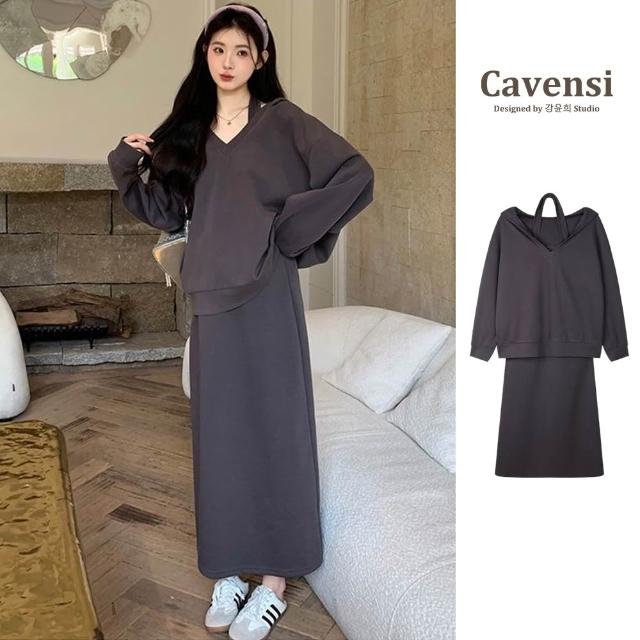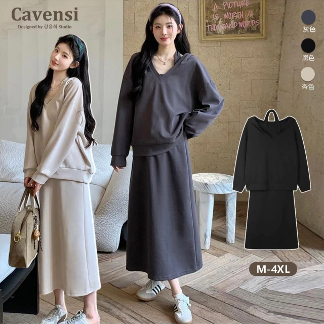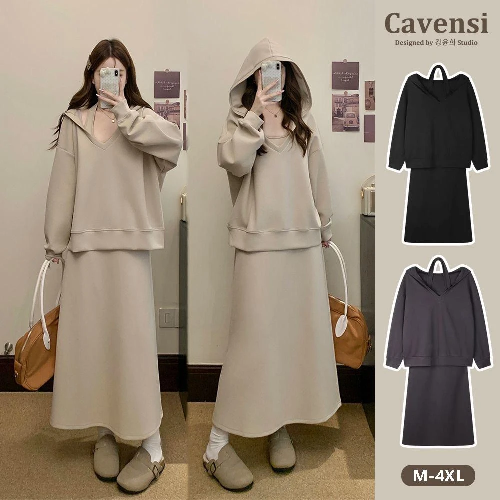 CavensiM-4XL 秋冬大尺碼套裝(3色)不費心思穿搭 簡約休閒套裝 帽T+洋裝 兩件套 秋冬套裝女 A183