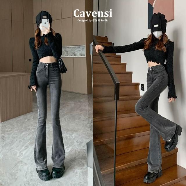 CavensiS-5XL 微喇叭牛仔褲女 黑灰2色 高腰牛仔褲 女生小喇叭褲 牛仔長褲 梨形身材 喇叭褲 A232