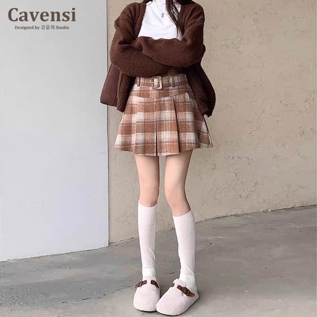 CavensiS-4XL🎅聖誕最出片 毛呢格紋百褶短裙(附腰帶) 格紋短裙 格子百褶裙 大尺碼短裙 聖誕穿搭 33T