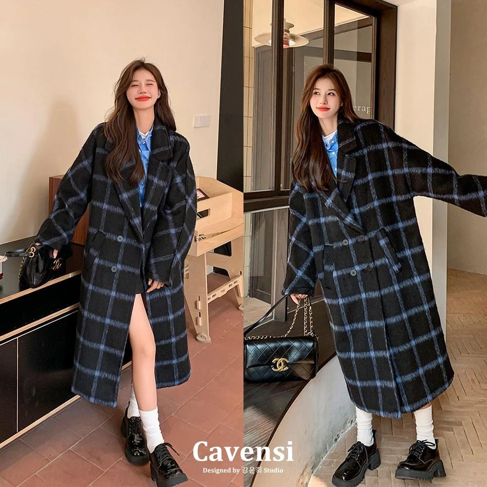 Cavensi雪國極暖30%羊毛☃️北海道外套 超出片格紋羊毛大衣 加大至85kg 長版大衣 大尺碼外套 18T