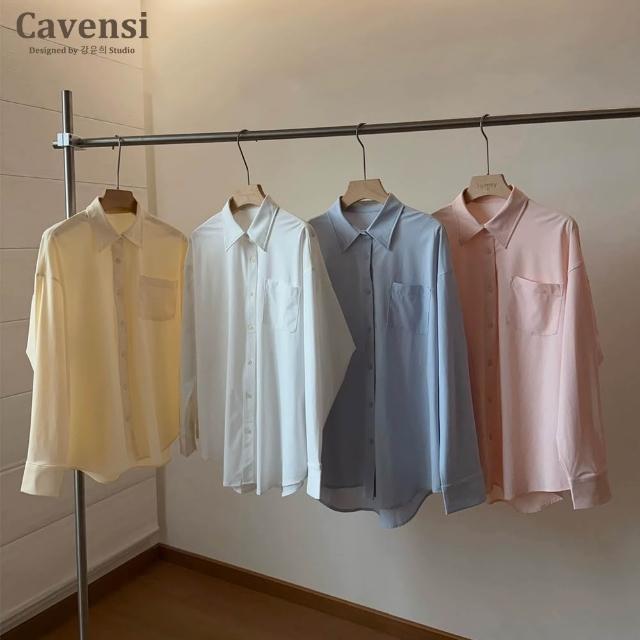 Cavensi加大至100KG 上班族白襯衫女 長袖襯衫 職業襯衫 寬鬆工作服 大尺碼正裝 白襯衣 藍色襯衫 40T