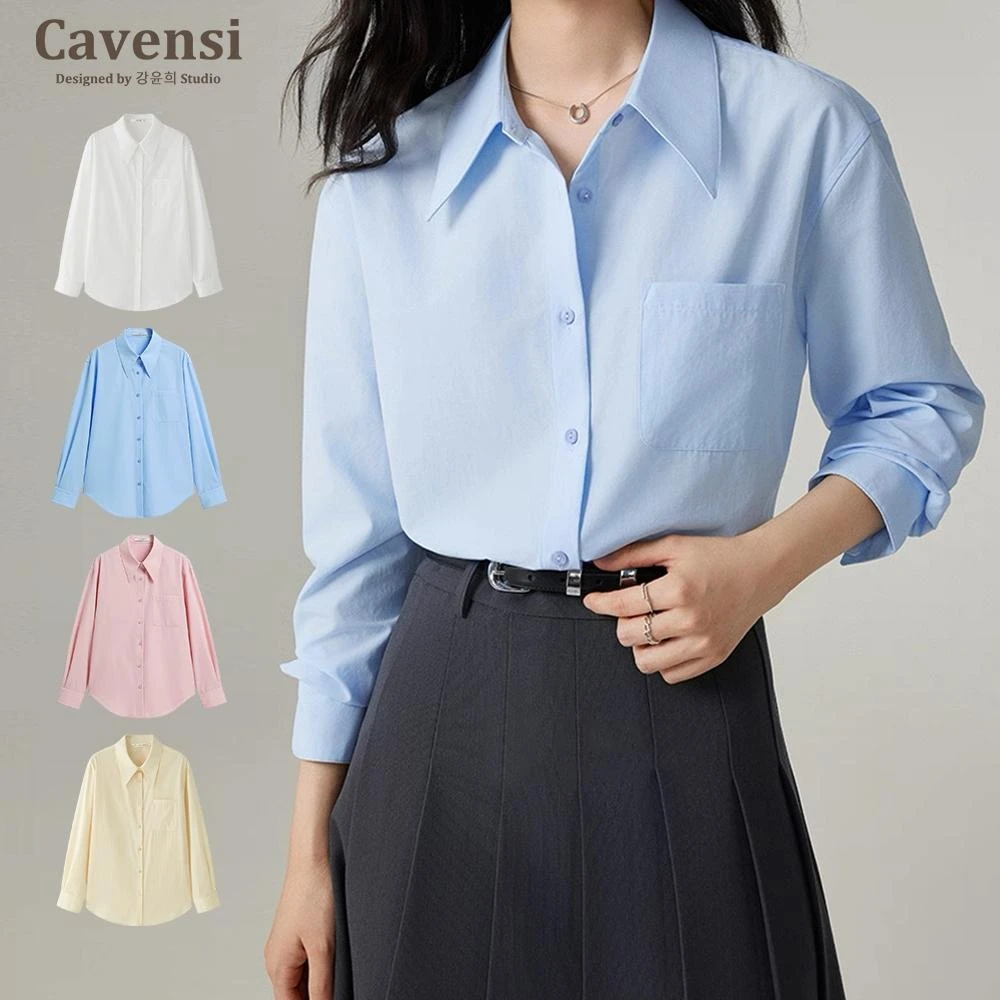 Cavensi加大至100KG 上班族白襯衫女 長袖襯衫 職業襯衫 寬鬆工作服 大尺碼正裝 白襯衣 藍色襯衫 40T