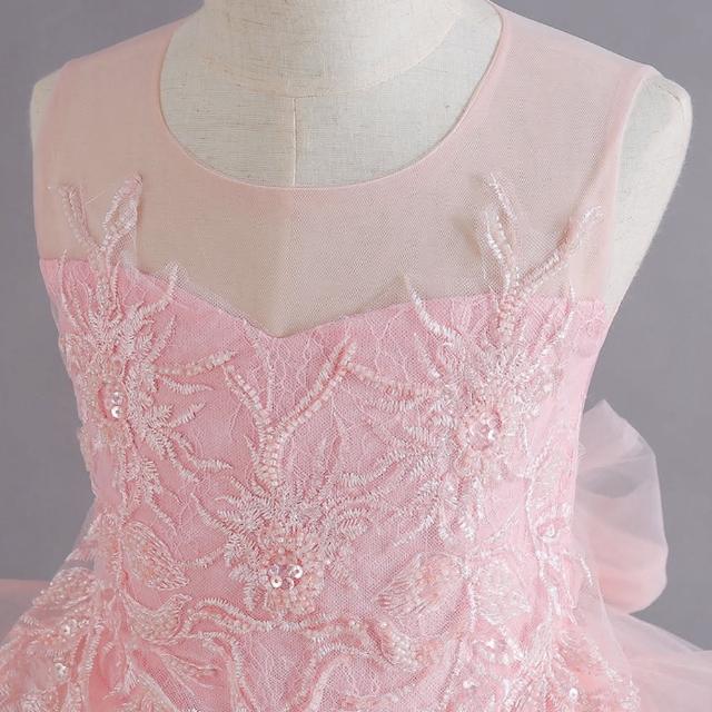 love charlotte華麗水溶蕾絲無袖多層次蓬裙長禮服(禮服 粉色 長裙 演奏 表演 生日 婚禮)