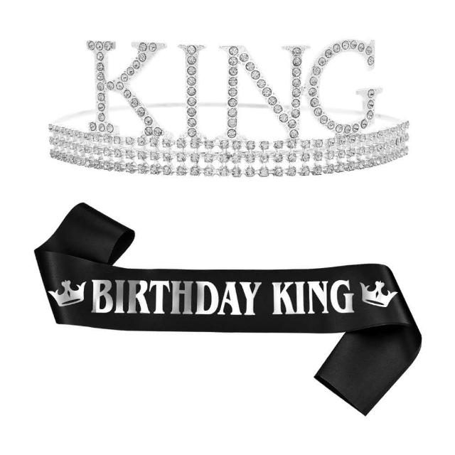 love, charlotteBirthday King 生日水鑽皇冠肩帶套裝(生日派對 肩背帶 生日 飾品)