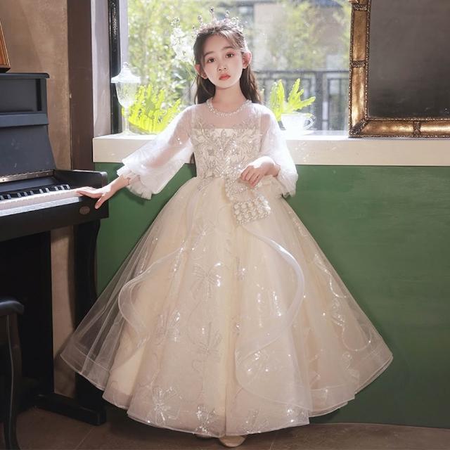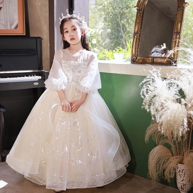 love charlotte 甜美氣質婚紗釘珠領口長袖長禮服(禮服 粉色 長裙 演奏 表演 生日 婚禮)